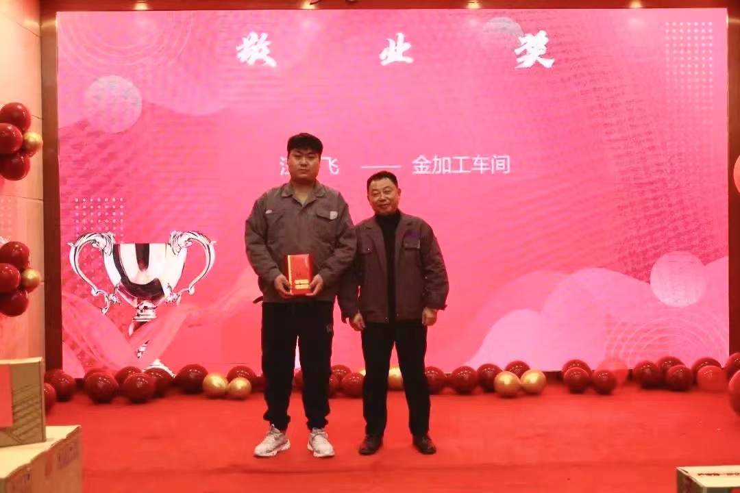 金加工的汪潮飞先生认真做好本职工作,保质保量完成公司领导给与的各项工作任务并出勤率达到全场最高,感谢汪潮飞的付出,敬业必有回报,最终由公司领导层综合审定,决定授予“敬业奖”。